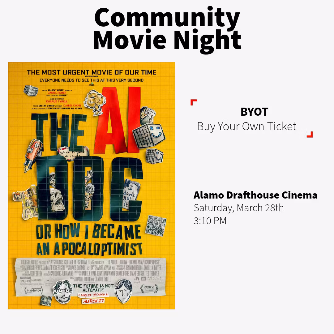 👆 Get your ticket from this link 👆 THE AI DOC: OR HOW I BECAME AN APOCALOPTIMIST Official Trailer: https://www.youtube.com/watch?v=xkPbV3IRe4Y From the Academy Award®-winning filmmakers behind Everything Everywhere All at Once and Navalny; a father-to-be tries to figure out what is happening with all this AI insanity. The AI Doc: Or How I Became an Apocaloptimist is a hand-made, eye-opening documentary about the most powerful technology humanity has ever created... and what’s at stake if we get it wrong. This documentary is only playing for a week, only that weekend, and it will sell out! Get your ticket now, come watch it with community and make new friends. We will have dinner in the Mission after to debrief 🍣