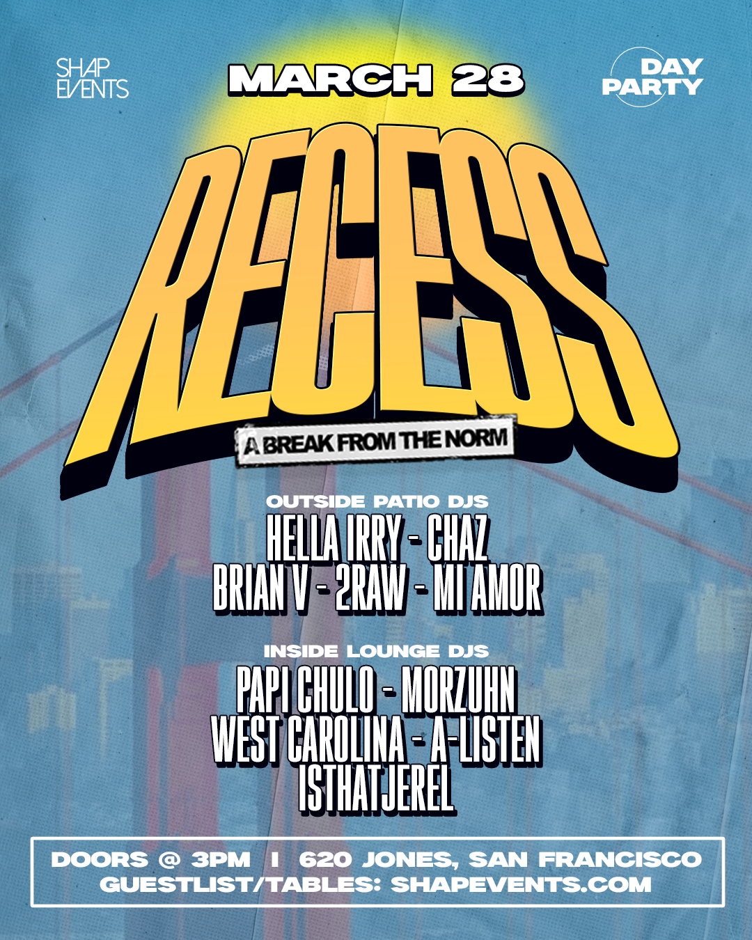 Posh - Get tickets for Recess - Day Party - A Break From The Norm by Shap Events - on Sat, Mar 28, 2026 - at 620 Jones