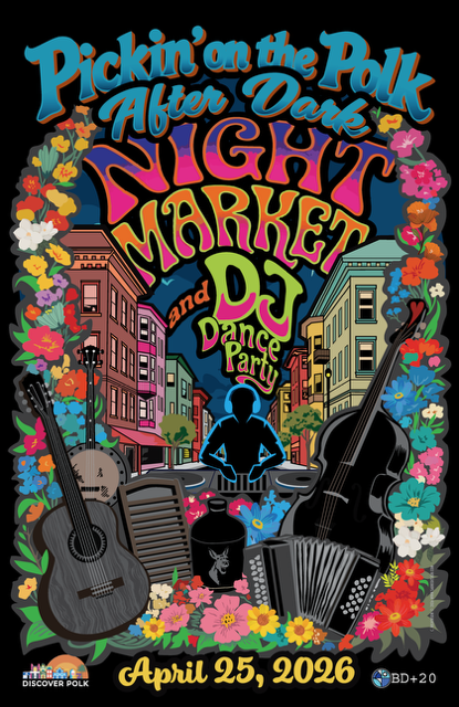 Keep the party going at “Pickin’ on the Polk” After Hours! On Saturday, April 25 from 6-10 PM, head to Polk St. & California St. for a free night of