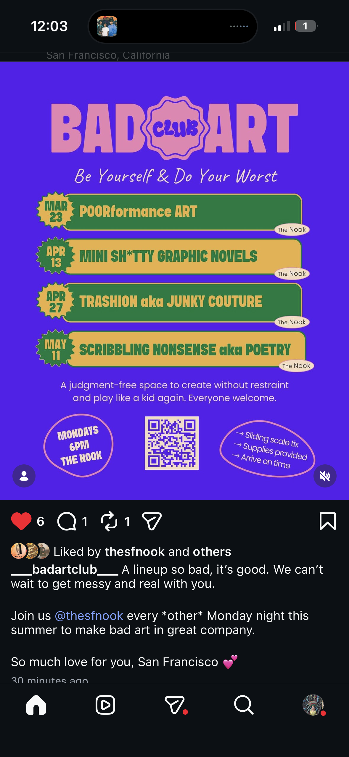 Bad Art Club event themed 'TRASHION aka JUNKY COUTURE' at The Nook. Part of the San Francisco series inviting people to make bad art in great company in a judgment-free space. Supplies provided, sliding scale tickets, and attendees should arrive on time.