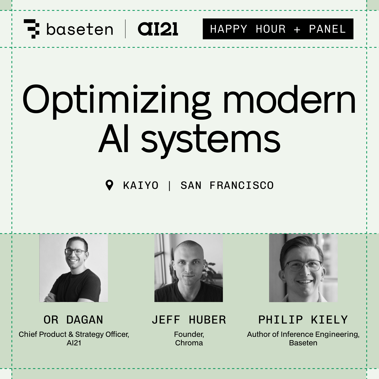 Unwind after the DeepLearning.AI conference with AI leaders from AI21 Labs, Chroma, and Baseten at Kaiyō, an 8-minute walk from the conference at Pier…